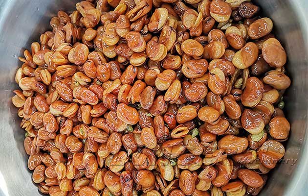 Frying broad beans, green peas, peanuts, cashew nuts, etc. fried food.