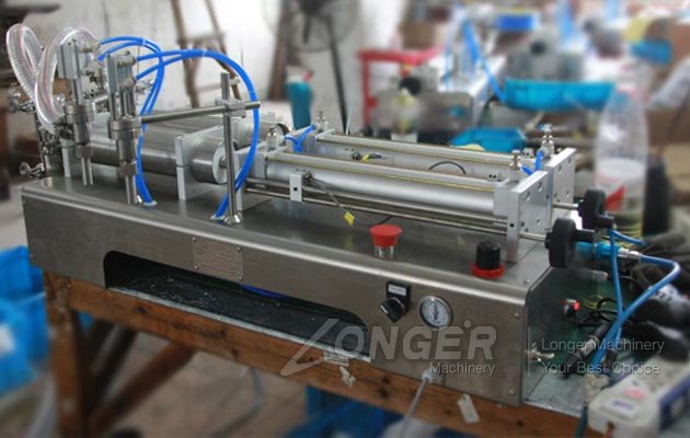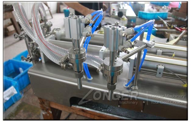 Double-head liquid filling machine is suitable for paste, sauce and other substances quantitative filling in food, medicine, chemical industry, daily chemical, washing, pesticides and special industries. It can filling juice, jam, vinegar, peanut butter, bean butter, garlic paste, ginger paste, shampoo and chemical etc.